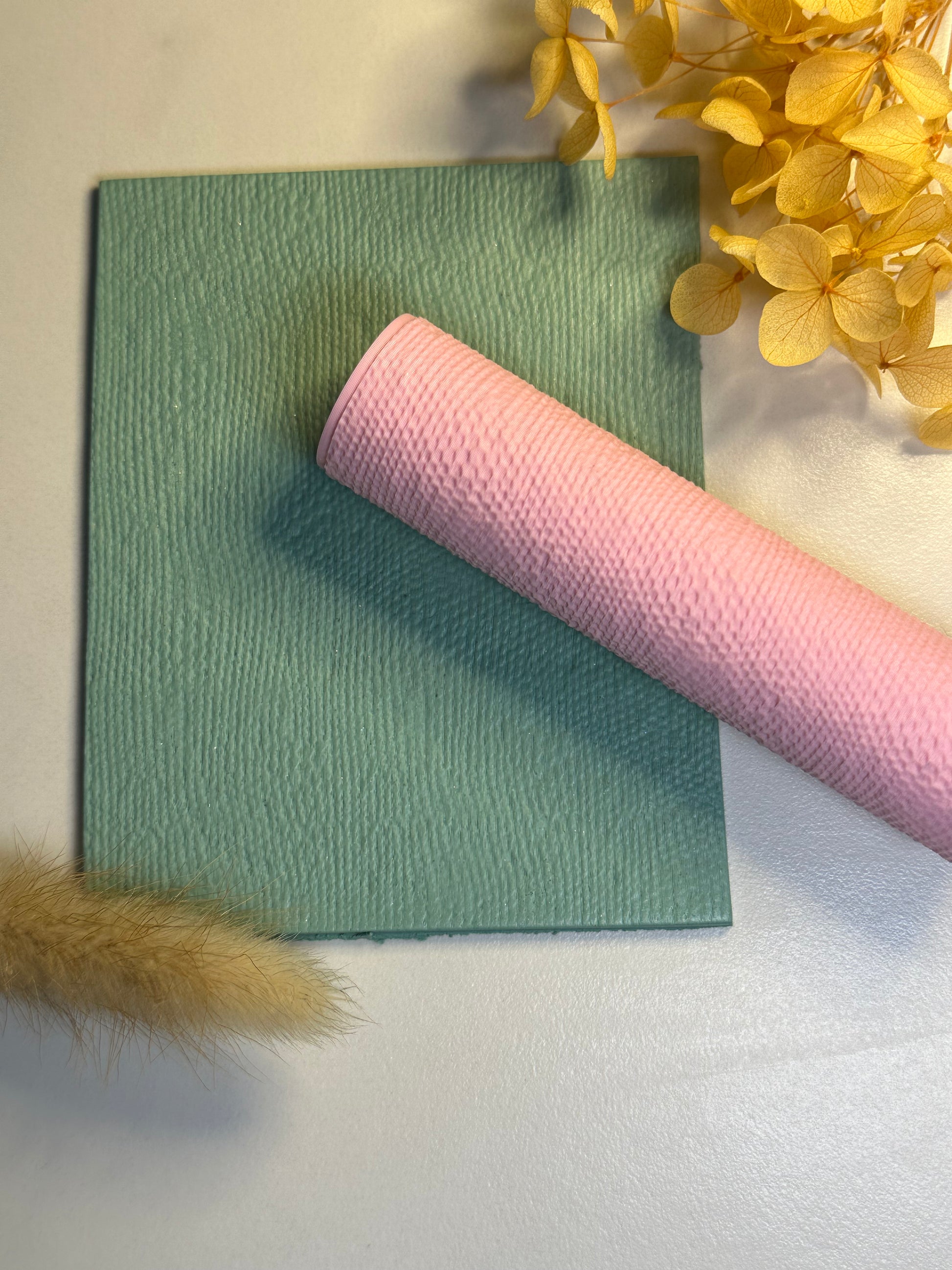 Add impressions to your creations by rolling over unbaked clay.